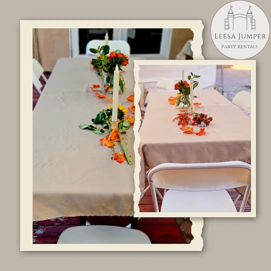 Convenient and versatile: A simple all-white design complements any theme. Renting what you need from a single vendor can save both time and effort.